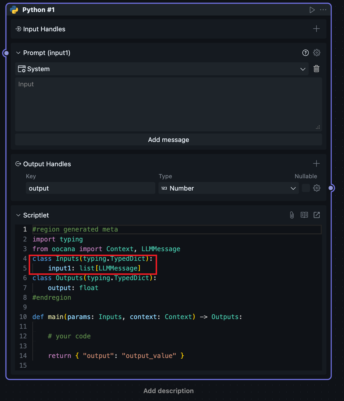 When selecting message, the input Handle will be converted to AI prompt input. This Handle cannot be connected.