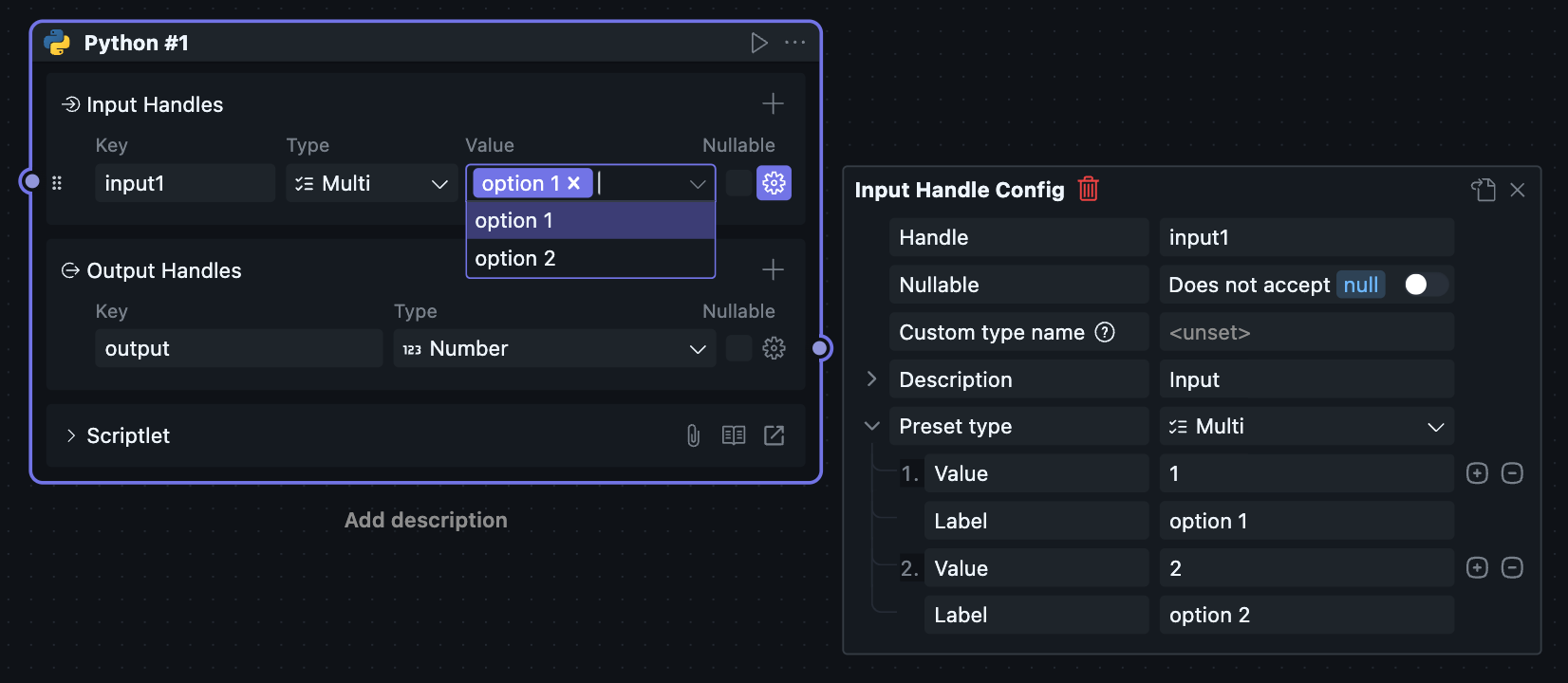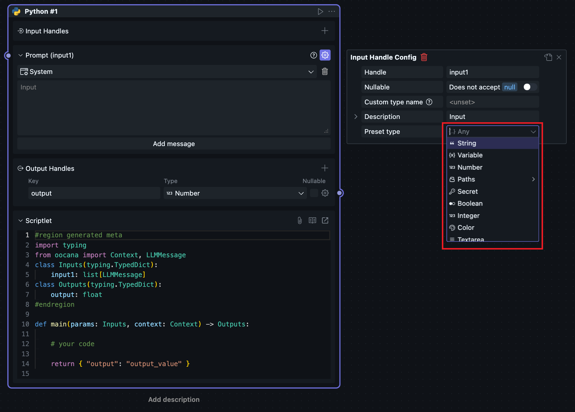 Users can configure multiple prompts on input Handles.