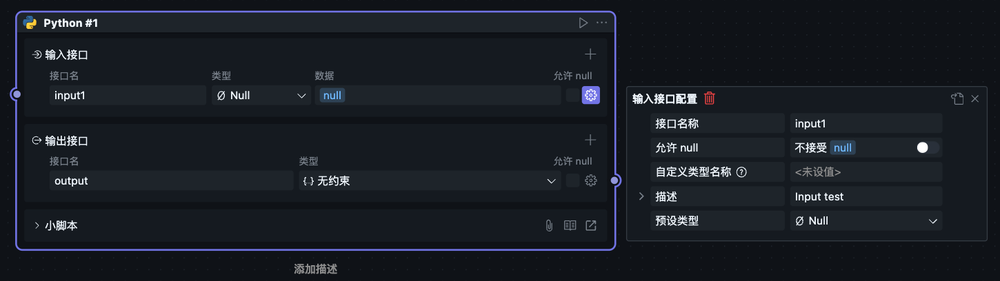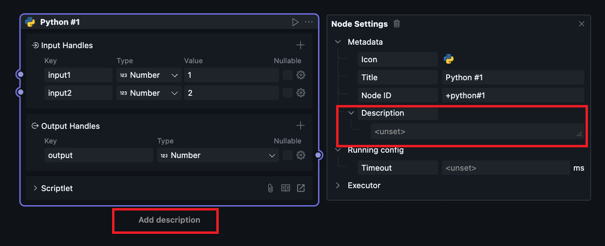 Node description can be entered in the configuration menu, or you can select the Node and double-click "Add description" below to enter the Node description.