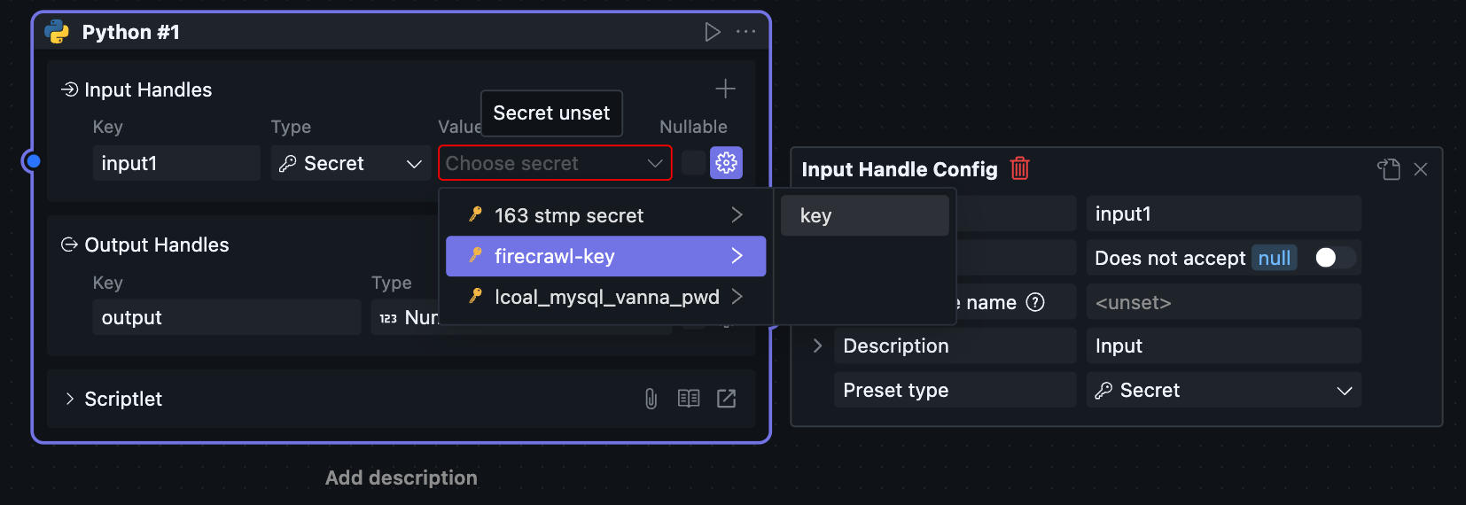 Then they can select and use them in secret type Handles.