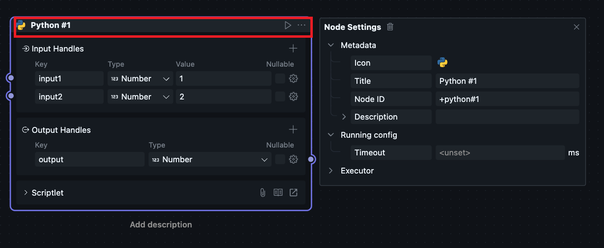 Currently, executors are implemented internally by the oomol team and support Python and Node.js runtime environments, so there are two corresponding options.